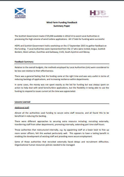 Summary Paper on Wind Turbine Funding Follow Up Paper (September 2015)